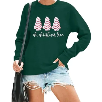 Show moreElevate your holiday spirit with the BANGELY Christmas Sweatshirt in a delightful green hue. This charming sweatshirt is designed with comfort and style in mind, made from a soft and cozy cotton blend that feels great against your skin. Whether you're celebrating Christmas with family or enjoying a fun night out, this loose-fit sweatshirt is perfect for women and teens alike, adding a festive touch to your wardrobe with its super cute Christmas tree cake graphic. Perfect for the holiday season, this festive pullover keeps you looking attractive and fashionable while you celebrate!