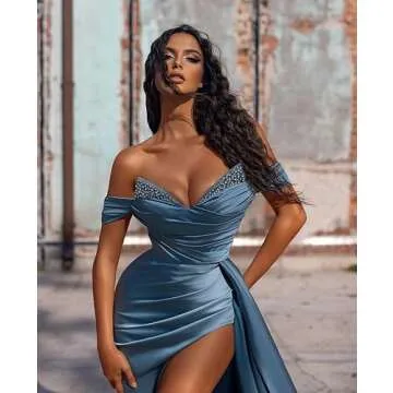 Bangunlah Off Shoulder Mermaid Prom Dresses Satin Ball Gown Long Formal Dress Wrap Ruched Evening Gowns Black 16W
