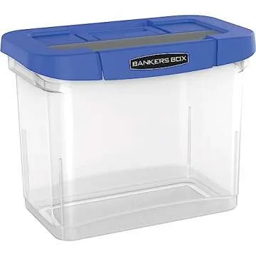 Bankers Box® Heavy-Duty Portable Storage File Box, 10 3/4" x 6 3/4" x 11 3/4", Blue/Clear