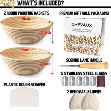 Banneton Bread Proofing Basket Set, 2 Round 9 Inch Rattan Sourdough Proofing Baskets with 2 Liners, Dough Scraper, Bread Lame & 5 Blades, Artisan Bread Making Tools, Sourdough Bread Baking Supplies
