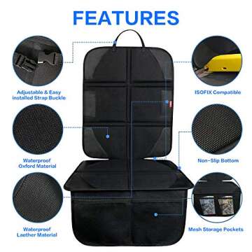 BANNIO Car Seat Protector, (2 Pack) Waterproof 600D Car Seat Protector for Child Car Seat with Organizer Pockets,Leather Seat Protector with Thickest Padding for Baby and Pet,Black
