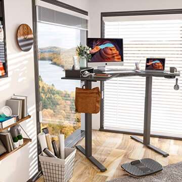 Show moreIntroducing the **BANTI Dual Motor L-Shaped Electric Standing Desk**, a blend of elegance and functionality perfect for any modern workspace. With a sleek black top and sturdy black frame, this desk not only enhances your home office aesthetic but also promotes a healthier work lifestyle. The dual motor design allows for seamless height adjustments between **27.6"** and **47.3"**, catering to both sitting and standing positions. Its electric lift system ensures smooth operation, while the collision-avoiding feature enhances safety during transitions. Additionally, the desk boasts three preset memory buttons, making it incredibly easy to find your preferred height at a push of a button. Set yourself up for productivity with the spacious **48-inch L-shaped working surface**, perfect for multitasking with multiple monitors or laptops.