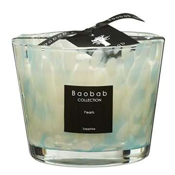 Indulge in the captivating ambiance created by the Baobab MAX10PS Pearls Sapphire Candle. Encased in a stunning blue marbled glass, this exquisite scented candle is not just a source of light, but a statement piece for your home décor. Designed with elegance and sophistication, its unique pearlescent finish adds a touch of luxury to any space. Enjoy a generous burn time of approximately 60 hours, allowing you to relish its delightful aroma and soft glow for countless hours....