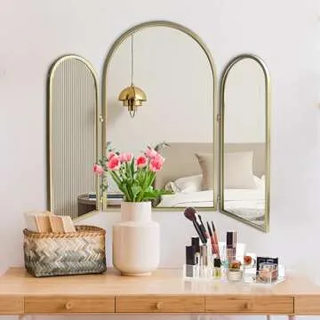 BAODANFU 3 Way Trifold Vanity Mirrors – Adjustable Golden Decor