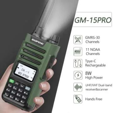 If you are an adventure lover or simply appreciate the reliability of clear communication, the BAOFENG GM-15 Pro GMRS Handheld Radio is your perfect companion. Designed with both functionality and user-friendliness in mind, this powerful radio is packed with 250 memory channels, which not only include 22 default GMRS channels but also 8 GMRS repeater channels to ensure extensive communication coverage. Thanks to advanced features like 154...