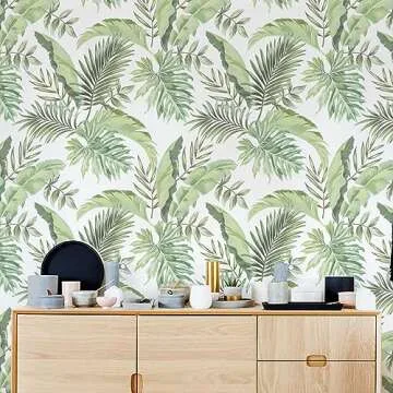BaoHArtHome Tropical Olive Light Green Palm Tree Leaf Wallpaper Peel and Stick Wallpaper Greenery Jungle Contact Paper Leaves Watercolor Bathroom Living Room 17.7in x 6.6ft
