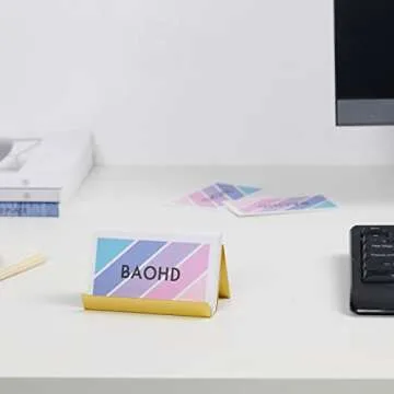 BAOHD Metal Business Card Holder for Desk, Modern Business Card Holder Display, Aluminum Desktop Business Card Organizer, Business Name Card Stands, Gold