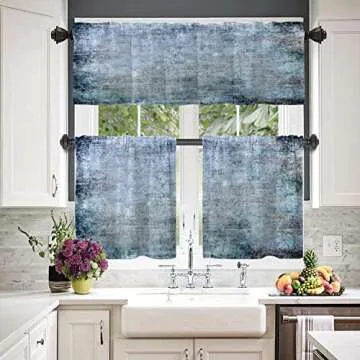 BaoNews Blue Grey Abstract Weathered Wall Kitchen Valances for Windows,Handmade Grunge Texture Blackout Valances Curtains Multilayer Polyester Drapes for Kitchen Bedroom 2 Pack 52X16 Inches