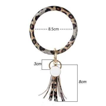 Baoqin Wristlet Key Ring Bracelet Round Ring Keychain PU Leather Tassel Bangle Bracelet Holder for Women Girls Gifts (Leopard)