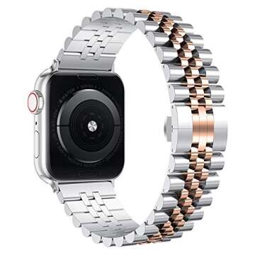 Show more Introducing the baozai Stainless Steel Strap for Apple Watch, the ultimate accessory for your smartwatch. Compatible with Apple Watch 42mm, 41mm, 40mm, and 38mm across various Series, including Series 10, 9, 8, 7, 6, 5, 4, SE, and 3, this iWatch band is designed specifically for women who appreciate elegance and comfort. It's not just a watch band; it's a fashion statement crafted from premium materials, available in stunning silver and rose gold options.