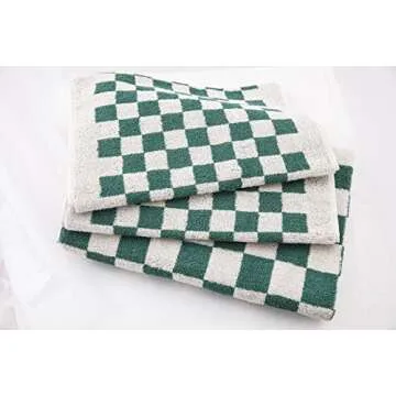 BAQ Towel Set, Check Plaid Towels, 100% Cotton, 1 Bath Towel (27inch×54inch), 2 Hand Towels (13inch×30inch), Super Soft and Absorbent, Fade-Resistant, Cozy, Gifts with Love (Green-and-White)