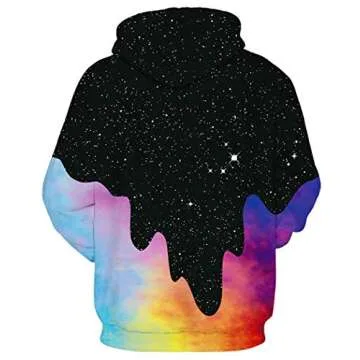BarbedRose Men's Digital Print Sweatshirts Hooded Top Galaxy Pattern Hoodie,Rainbow Milk,L/XL