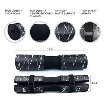 Barbell Pad for Standard and Olympic Barbells with Safety Straps, Foam Pad for Weightlifting, Hip Thrusts, Squats and Lunges(Black)…