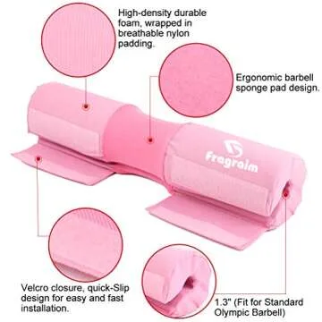 Barbell Squat Pad, Safety Bar Pad with Thick Foam and Nylon Padding - Neck & Shoulder Protective Pad Support for Squats, Lunges & Hip Thrusts - Fits Olympic Standard Weightlifting Bar - Pink