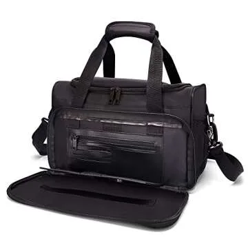 Show more Introducing the Barber Hairdressing Bag, the ultimate companion for hairdressing professionals and beauty artists alike! This portable handbag is designed meticulously to accommodate a plethora of salon tools, making it an indispensable asset for anyone on the go. Measuring 13.7" x 8.6" x 8.26", it features a spacious center pocket capable of securely holding your blow dryer, scissors, combs, clippers, and more. With its sleek black finish, this large storage bag not only offers functionality but also adds a touch of elegance to your professional gear.