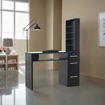 BarberPub Premium Nail Desk with Storage for Beauty Professionals