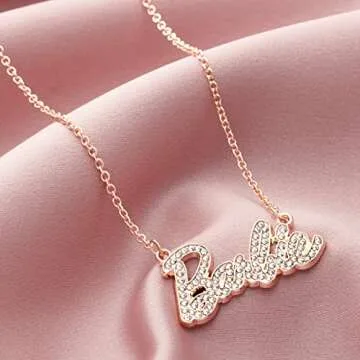 Barbie Crystal Script Logo Necklace (Rose Gold)
