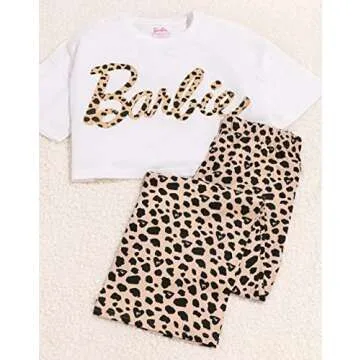 Barbie Pajamas Womens Animal Print Logo Cropped T-Shirt Bottoms Pjs White