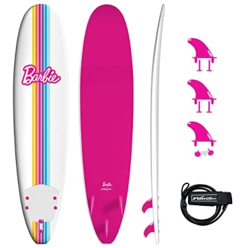 Show moreThe Barbie Signature 8ft Surfboard by Wavestorm is the ultimate fun accessory for any young surfer! This breathtaking surfboard celebrates both style and adventure, embodying the iconic spirit of Barbie while ensuring an exhilarating surfing experience. Designed with a high-density graphic slick bottom, this surfboard offers impressive speed and rigidity, making it perfect for both beginners and more experienced surfers. Its vibrant colors bring the fun of the beach to the forefront, making every surfing trip a special occasion.