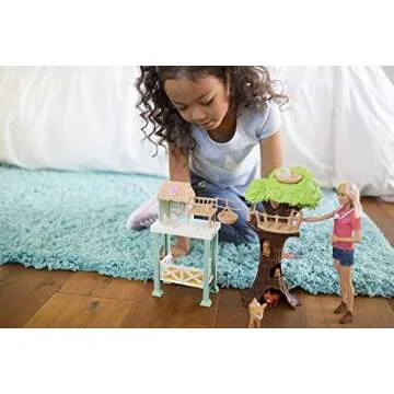 Barbie Vet Doll & Playset, Animal Rescuer Theme with 8 Wildlife Figures, Treehouse, Care Station, Rope Bridge & Accessories