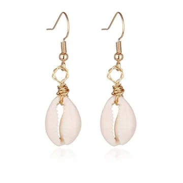 Barch Young Natural Cowrie Shell Earring for Women with Bohemia Style for Summer Beach (1# White)