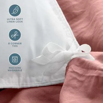 Show more Transform your bedroom into a cozy sanctuary with the Bare Home Microfiber Duvet Cover Set. This luxurious set is expertly crafted from ultra-soft, washed microfiber that brings the comfort of your favorite vintage tee right to your bed. Designed for both aesthetic appeal and contentment, the duvet cover features a linen-like texture that is naturally relaxed and effortlessly chic. With its soothing Dusty Rose color, this duvet cover will not only enhance the decor of your sleeping space but also envelop you in comfort each night. Measuring 106” x 94”, it is perfect for King and California King beds, featuring a convenient zipper closure and securing ties that keep your comforter snugly in place.