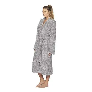 Show moreIntroducing the Barefoot Dreams CozyChic Heathered Adult Robe – where luxurious comfort meets sophisticated style. Crafted from a sumptuous blend of 100% polyester microfiber, this robe is designed to envelop you in warmth and softness, making it the ultimate lounging essential for those cozy days at home. Whether you're enjoying a lazy weekend morning with a cup of coffee or snuggling up with a good book, this robe delivers unparalleled comfort without compromising on elegance. Available in a chic Graphite and White color combination, it’s the perfect addition to your loungewear collection.