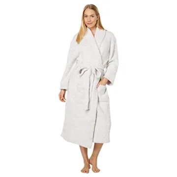 Show more Experience the ultimate in relaxation with the Barefoot Dreams CozyChic Heathered Towel Robe, a beautiful blend of sumptuous comfort and elegant design, crafted exclusively for women. This chic robe is made from 100% polyester, providing a cloud-like softness that wraps you in coziness; it is perfect for chilly mornings and winding down after a busy day. With its sophisticated shawl collar and mid-calf length, this robe doesn’t just offer functionality—it also elevates your loungewear style to new heights.