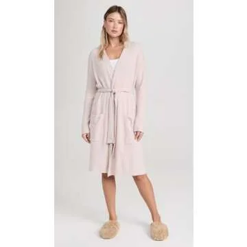 Show moreExperience the ultimate blend of luxury and comfort with the Barefoot Dreams® CozyChic Lite® Ribbed Robe in a beautiful Faded Rose-Pearl. Renowned for its exceptional quality and stunning aesthetics, this robe is designed to elevate your lounging experience. Crafted from a remarkable blend of 80% Nylon and 20% Rayon, it guarantees a super soft texture that feels heavenly against the skin. This stylish robe features a versatile fold-back shawl collar, allowing you the option to wear it open for a relaxed vibe or wrap it snugly around you for cozy warmth, which makes it suitable for all seasons.
