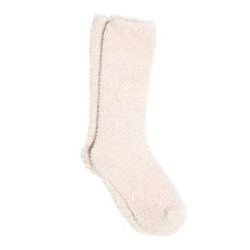 Barefoot Dreams CozyChic Women Heathered Socks, Crew Socks, Plush Socks, Loungewear, Warm Toes, Fuzzy Socks-Oyster/White-Dusty Rose/White (Set of 2)