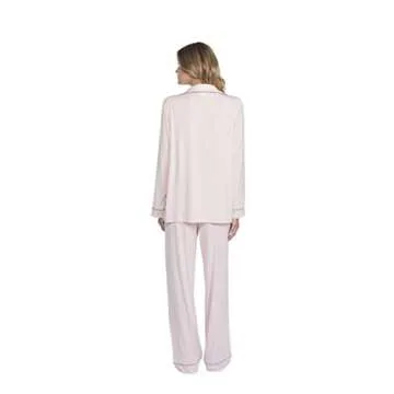 BAREFOOT DREAMS Women's Luxe Milk Jersey Piped Pajama Set, Pink, Small