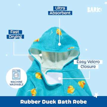 BARK Dog Bathrobe - Fast Drying Bathrobe with Velcro Closure & Wrap Tie Snuggle, Cute Dog Clothes, Easy to Clean, Machine Washable, Dog Coats for Medium Dogs, Tumble Dry Low | Rubber Duck, Medium