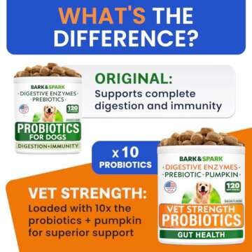 When compared to other dog probiotic products, Bark&Spark stands out due to its unique combination of high potency probiotics and pumpkin fiber, specifically targeted to alleviate various digestive issues. While many competitors offer plain capsules or powders that your dog may refuse to take, our chews come with a delicious flavor that dogs love, ensuring regular and effective consumption. Plus, the comprehensive formula that combines enzymes and prebiotics is designed for maximum digestive support, setting it apart from simpler products.