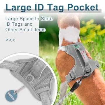 BARKBAY Dog Harness No Pull with ID Tag Pocket - Heavy Duty, Reflective, Easy Control for Large Dogs (Grey,M)
