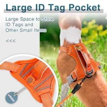 BARKBAY Dog Harness No Pull with ID Tag Pocket - Heavy Duty, Reflective, Easy Control for Large Dogs (Orange,M)