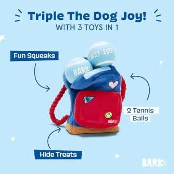 Barkbox 2 in 1 Interactive Plush Dog Toy - Rip and Reveal Toy for Dogs and Puppies - Stimulating Squeaky Pet Toys | Janspup Backpack (Large)