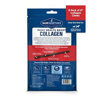 Barkworthies Plain Collagen Sticks - 6 Inch 8 Count (Pack of 1) - Long-Lasting, Single Ingredient