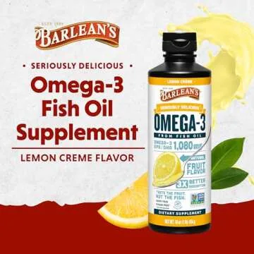 Barlean's Omega 3 Fish Oil Liquid Supplement, Lemon Crème, 1080mg of Omega 3 EPA and DHA Fatty Acid, 16 oz