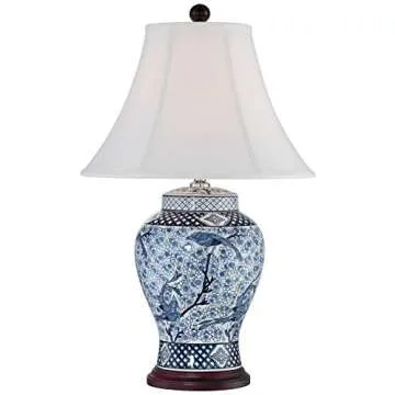 Show moreIntroducing the Barnes and Ivy Shonna Asian Chinese Ginger Jar Table Lamp, a timeless masterpiece that effortlessly marries functionality with captivating aesthetics. Standing at 27 inches tall, this exquisite table lamp boasts a beautifully crafted ceramic body adorned with a delicate blue and white bird and branch motif. Its captivating design embodies the elegance of traditional oriental art while becoming a statement piece for any room in your home. Whether you're looking to enhance your bedroom, brighten your living room, or add charm to your entryway, this lamp serves as a perfect source of illumination.