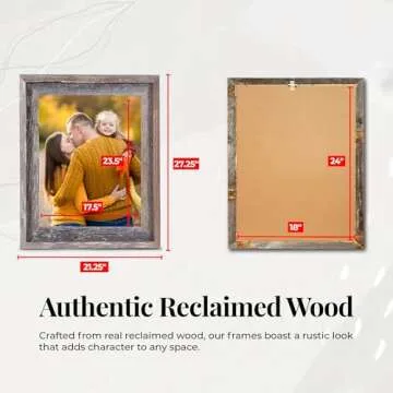 BarnwoodUSA LLC Farmhouse Rustic Signature Picture Frame, Reclaimed Wood Photo Frame—Wooden Wall Frame for Living Room, Bedroom, Office Display, Made in USA,18" x 24" Natural Weathered Gray
