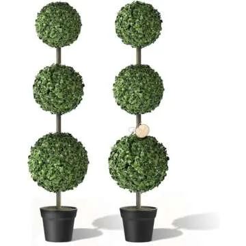 Barnyard Designs 4ft (48”) Artificial Boxwood Topiary Ball Tree, Front Porch Home Decor, Faux Fake Plant Decoration, Set of 2