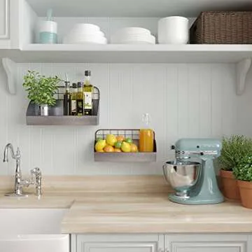 Show moreTransform your decor with the Barnyard Designs Galvanized Metal Rustic Farmhouse Wall Hanging Storage Caddy Set. Perfectly blending functionality with a charming rustic aesthetic, these caddies are crafted from durable galvanized metal, ensuring they withstand the test of time. The set includes two sizes—large (16.5” x 6” x 9.5”) and small (15.25” x 5” x 8”)—allowing you to mix and match or use them separately to organize your space efficiently. With a distressed finish, these caddies bring an authentic farmhouse feel, making them ideal for various settings, from kitchens to bathrooms and beyond.