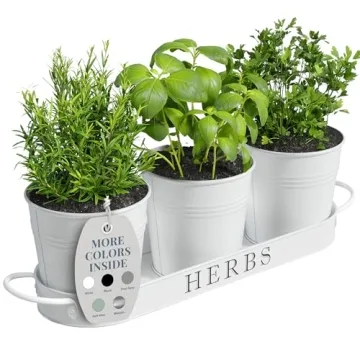 Show moreTransform your home into a garden of culinary delights with the exquisite Barnyard Designs Indoor Herb Garden Planter Set. This beautifully crafted set includes three vintage metal pots housed within a charming tray, allowing you to grow your favorite herbs right on your kitchen counter or windowsill. Each pot measures 4.25” W x 4” H, with the tray designed to accommodate all three pots comfortably. The classic white matte finish enhances the aesthetic appeal, making it an eye-catching decoration while serving a functional purpose. Whether you’re cultivating fresh basil, rosemary or displaying vibrant succulents, this planter delivers both style and substance.