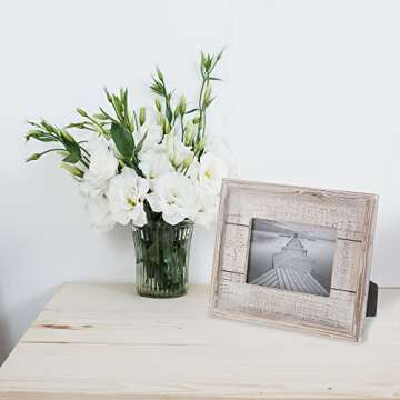 Show more Transform your cherished memories into stunning focal points with the Barnyard Designs Rustic Wood Picture Frame. Designed to perfectly complement both farmhouse and coastal beach aesthetics, this beautiful wooden photo frame is crafted for both style and durability. The distressed white finish evokes a sense of vintage charm, making it an ideal addition to any home decor, whether you're looking to enhance your living room, or bedroom, or create a gallery wall that tells a story.