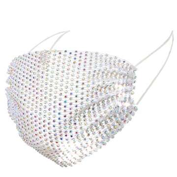 Barode Sparkly Rhinestone Mesh Mask Crystal Colorful Masquerade Ball Party Nightclub Face Masks Venetian Mardi Gras Jewelry for Women and Girls (Black) (White)