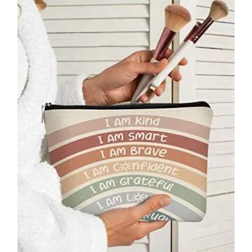 BARPERY I Am Kind I Am Smart I Am Brave Inspirational Makeup Bag,Makeup Bags for Women, Rainbow Cosmetic Bag Gift for Women,Inspirational Gifts for Women Teacher Coworker