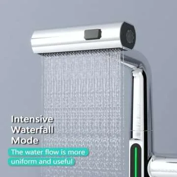 BARROCK Waterfall Bathroom Faucets with Pull Down Sprayer, Modern Pull Out Bathroom Sink Faucet with Digital Temperature Display, Height Adjustable Basin Mixer Tap No Battery Needed, Chrome
