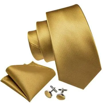 Barry.Wang Mens Ties Silk Tie Pocket Square Cufflinks Set Woven Designer Gold