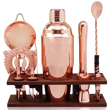 Show moreDiscover the art of mixology in style with the stunning Bartender Kit Copper 11 Piece from J&A Homes. This beautifully crafted copper Parisian cocktail mixology set is not just a collection of tools; it's an essential upgrade to your cocktail-making experience. Featuring a gorgeous rose gold shaker, a stylish muddler, a unique strainer, and a precision jigger, every essential piece is designed with meticulous care to ensure perfect drink preparation every time. The captivating copper finish adds a vintage touch, making this set a striking centerpiece for any home bar.