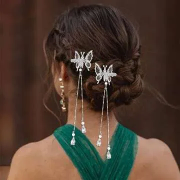 Bartosi Butterfly Clips Hair Silver Hair Barrettes Fluttering Tassel Hair Accessories Set for Women and Girls (Pack of 2)